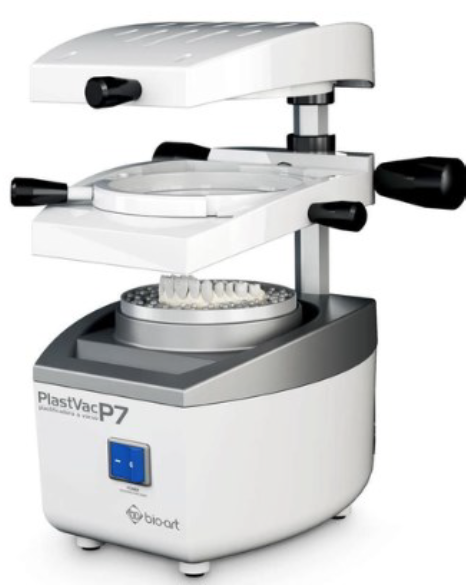 Pioneer in the Brazilian market, the Bio-Art vacuum forming machine has been manufactured since 1979. Being easy to use and its differentiated design, makes the vacuum forming machine the leader in the Brazilian market. A powerful 1400W motor, it automatically generates the vacuum at the conformation instant. The Plastvac P7 does not need a special installation, since it is connected to the consulting / laboratory power grid. Quick and practical, possibility the confection and delivery of sheets to the patient in a single session. On average the payback comes with the production of 30 sheets. The Plastvac P7 has a universal adapter for round and square sheets of different dimensions, thicknesses and materials.