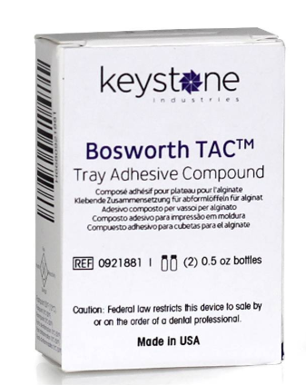 TAC Tray Adhesive Compound is a leading tray adhesive compound available in convenient spray cans or brush-on liquid for use with alginate impression materials. TAC Tray Adhesive Compound securely holds the alginate in the tray when the impression is removed from the patient s mouth. TAC Tray Adhesive Compound is alcohol-based for faster drying and easier clean-up and can be dissolved with Isopropyl Alcohol.